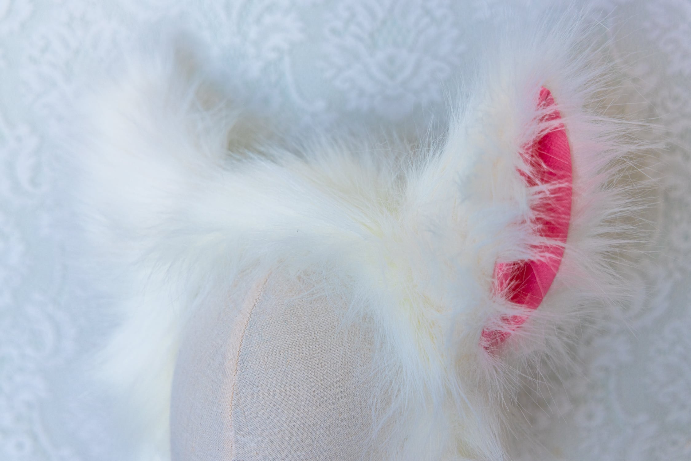 #ふわふわのみみ #FUWAFUWAnoMIMI しろいろファーとコスモスピンクリボン