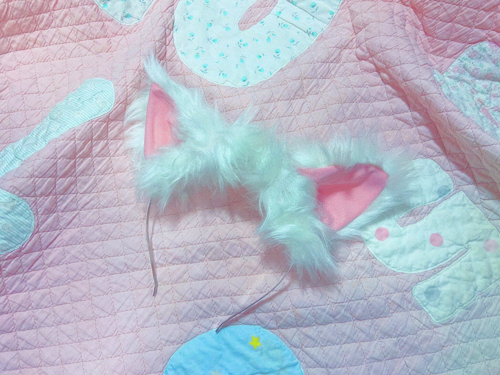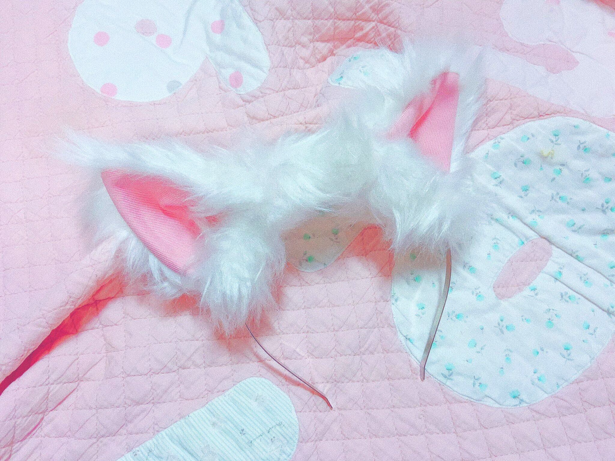 ふんわり長毛のやわらかオフホワイトのファーに、綺麗なピンク色のなかみみ生地を合わせています。