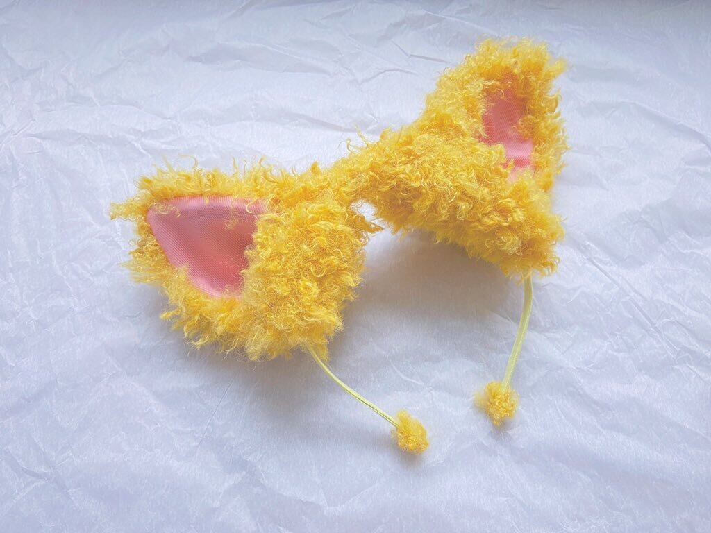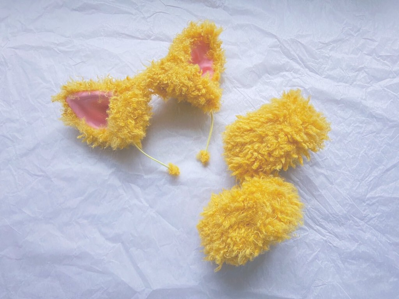 ひまわりイエローのくりくりファーで、新作のネコちゃんを作りました。