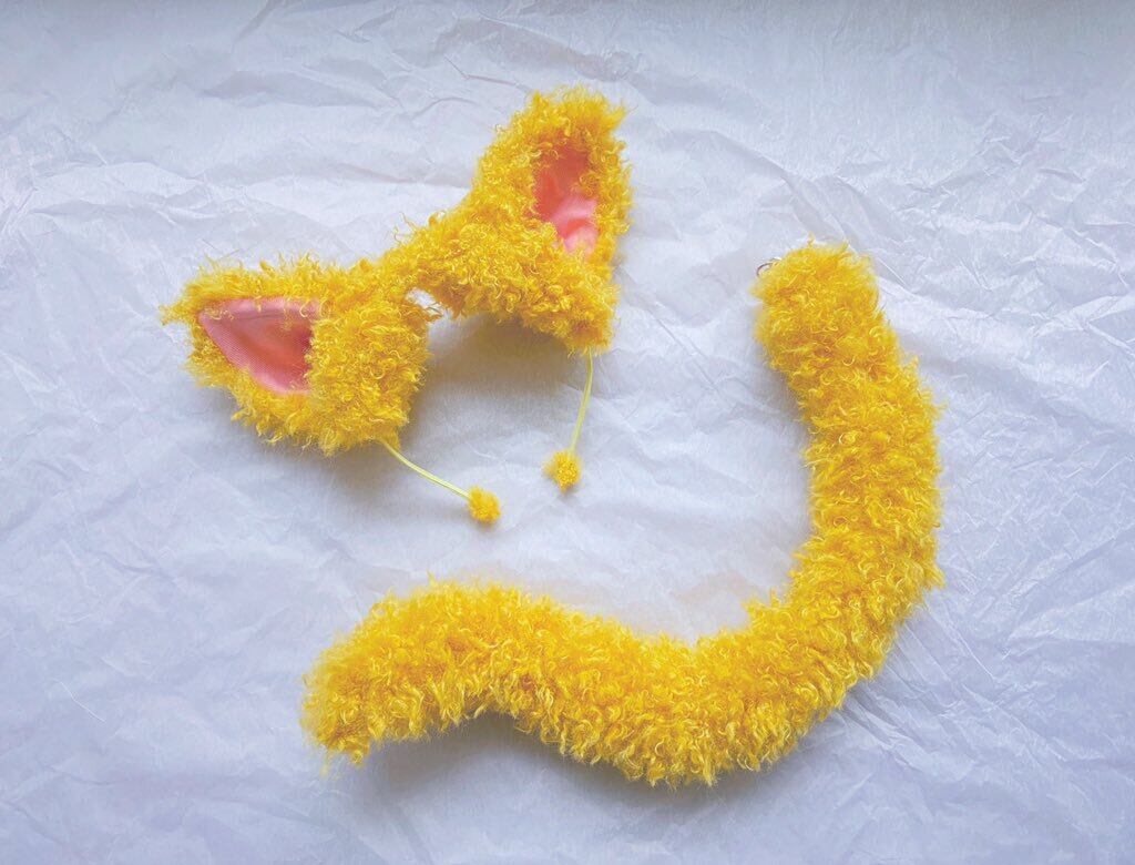 ひまわりイエローのくりくりネコちゃん(しっぽセット