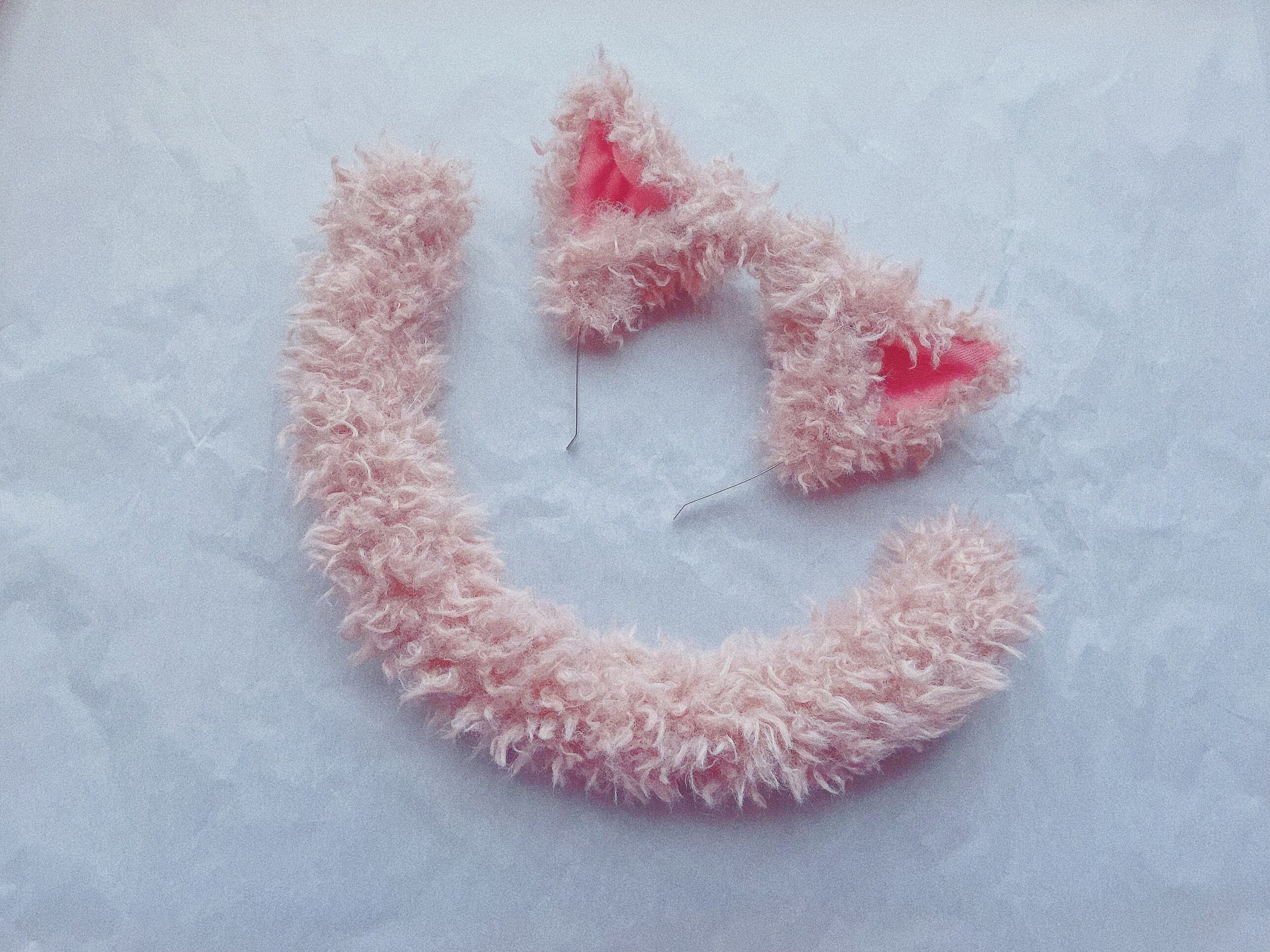 くすみピンクのふわふわファーで、新作のネコちゃんを作りました。