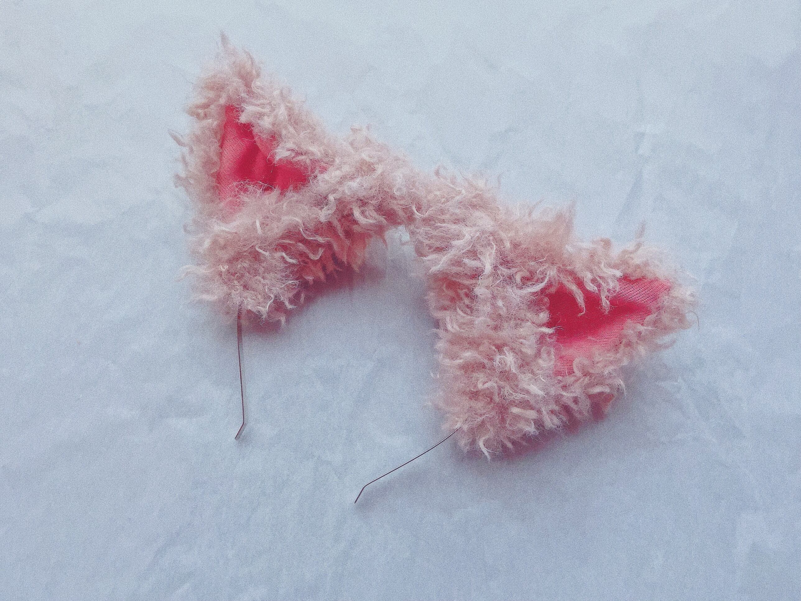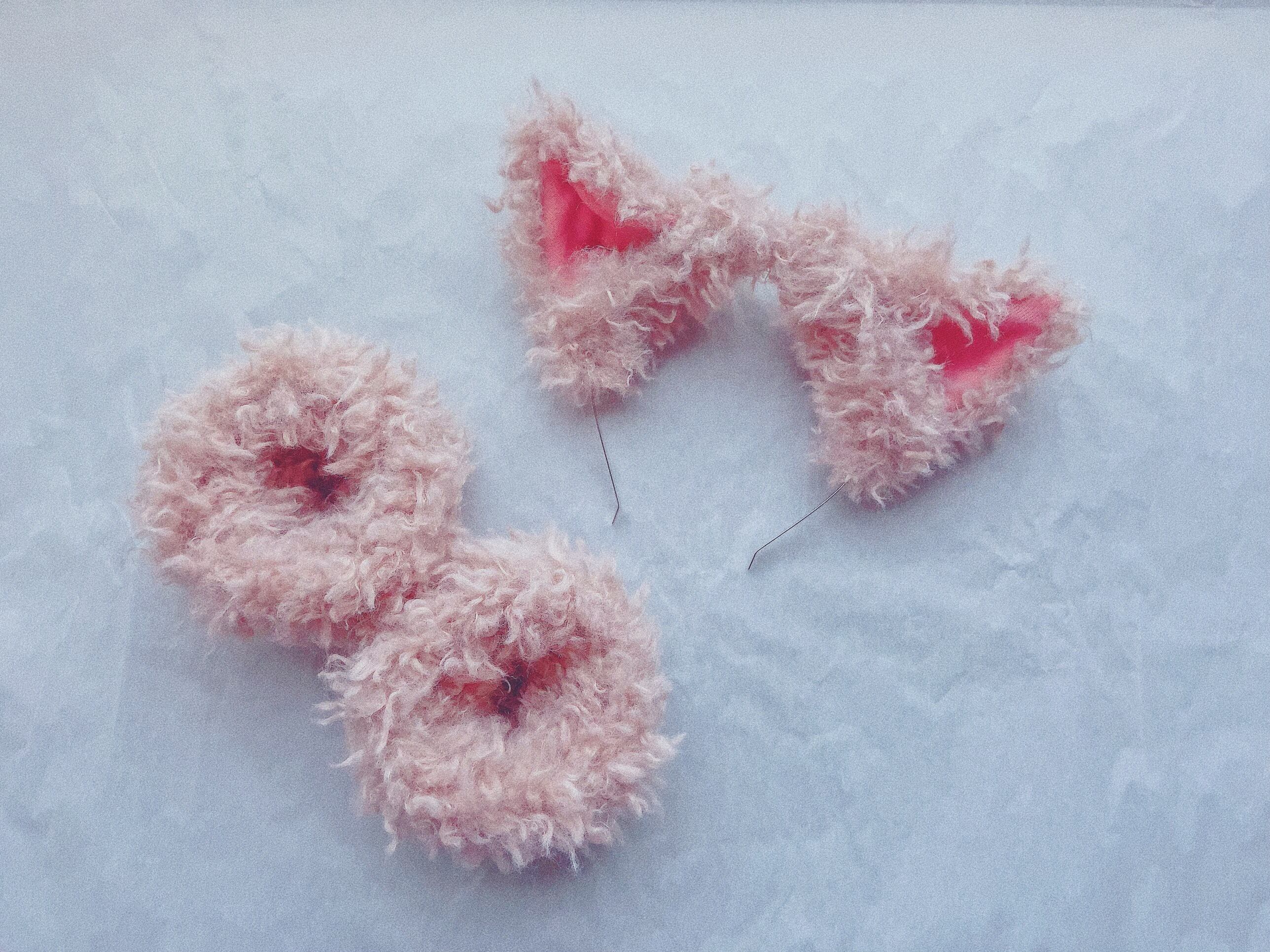 くすみピンクのふわふわファーで、新作のネコちゃんを作りました。