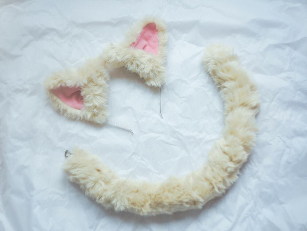やわらかクリームカラーのふわふわネコちゃん(しっぽセット