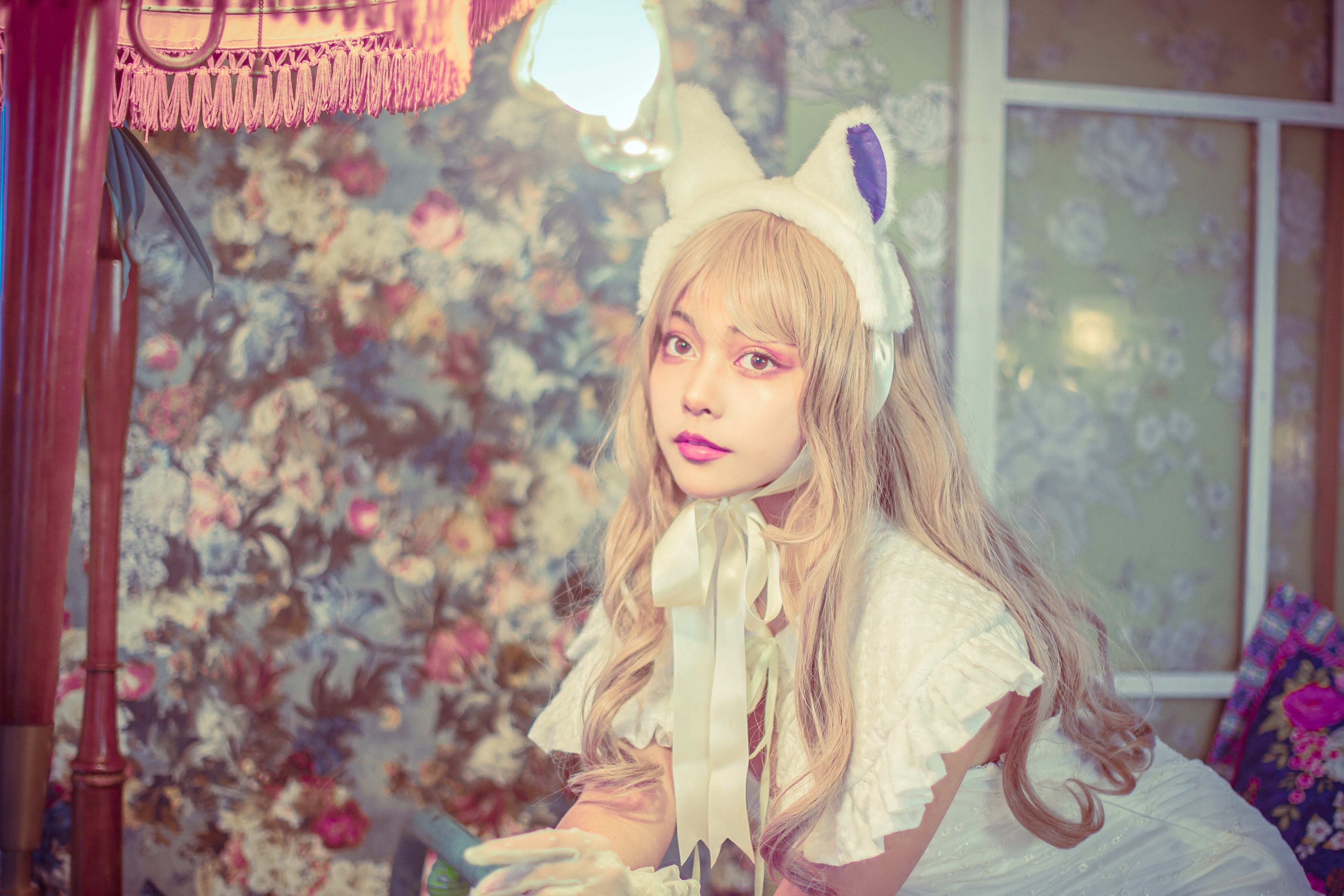 フラミンゴピンクのヘッドドレス型ネコちゃん(廉価版)
