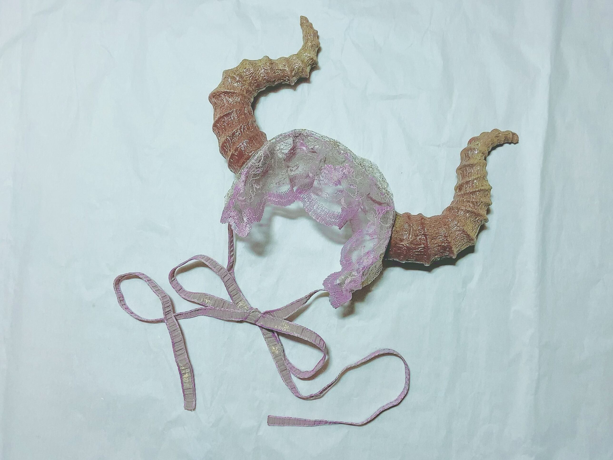 【1点もの作品】すみれいろレースのツノヘッドドレス【撮影付き】