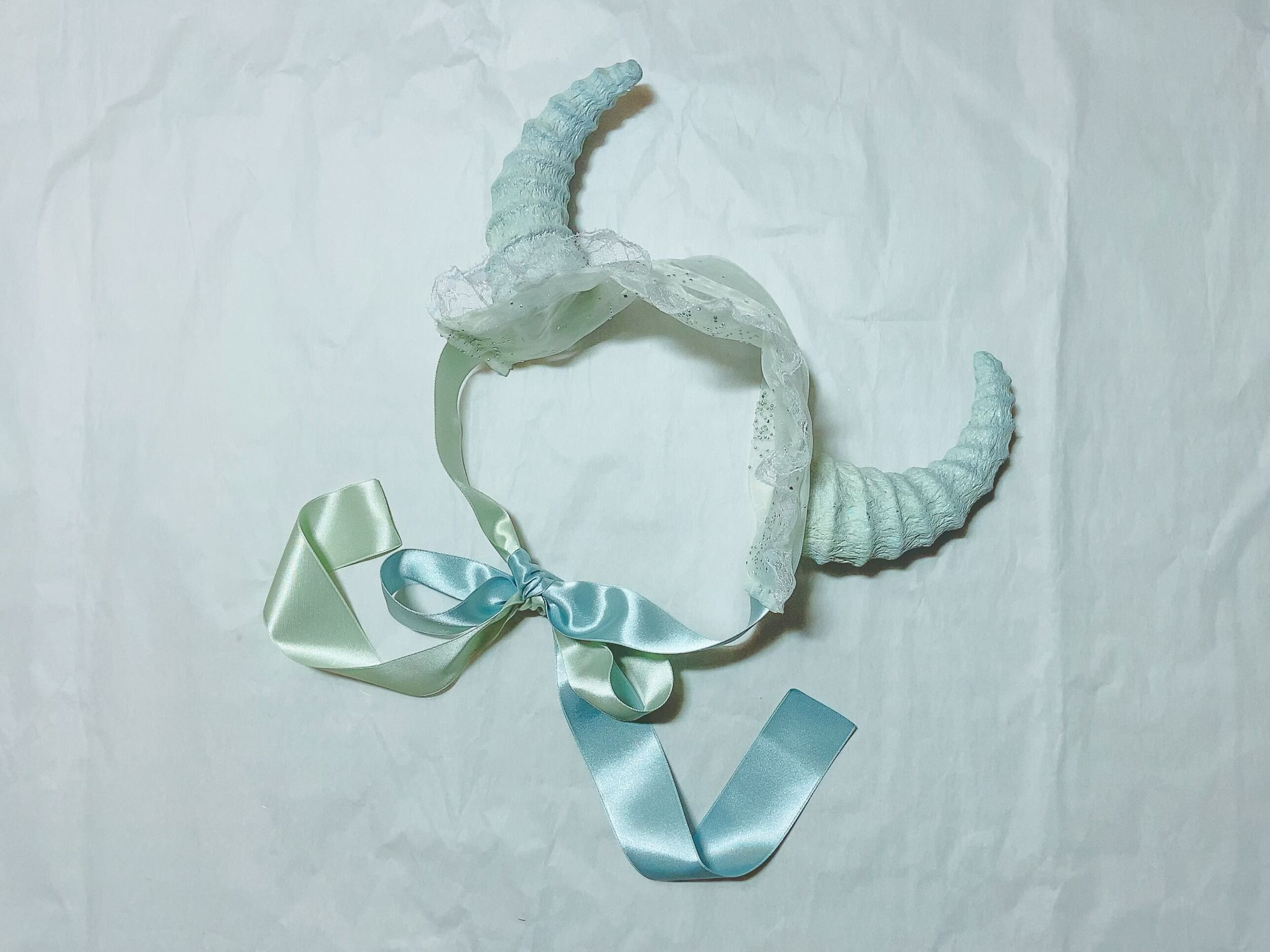 暑い夏をひんやりさせる、すずしげなツノのヘッドドレスを作りました。