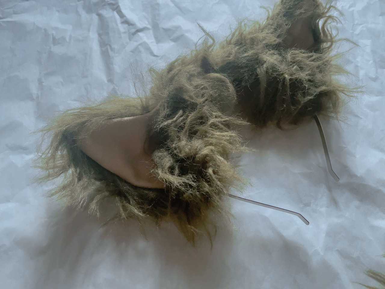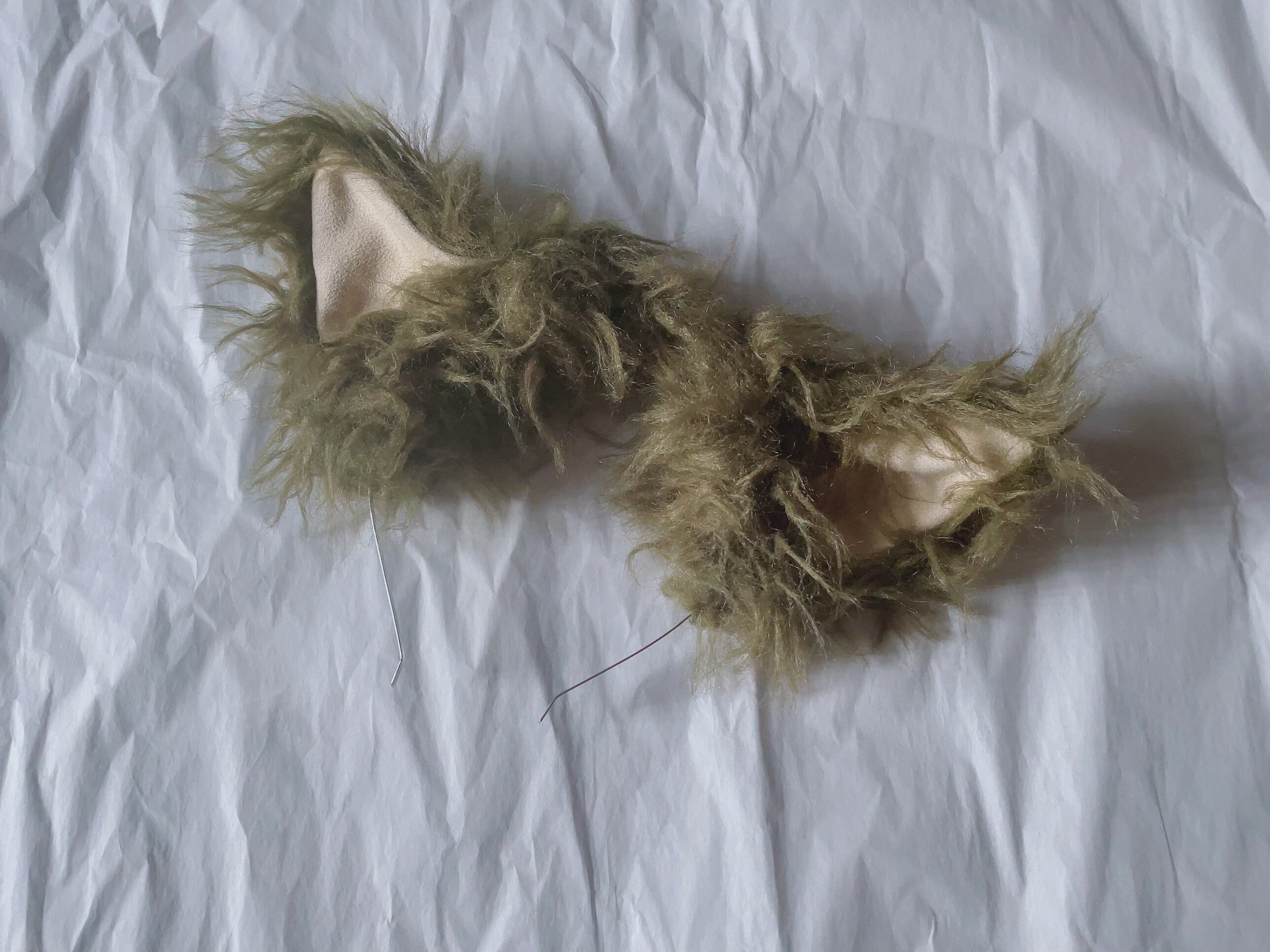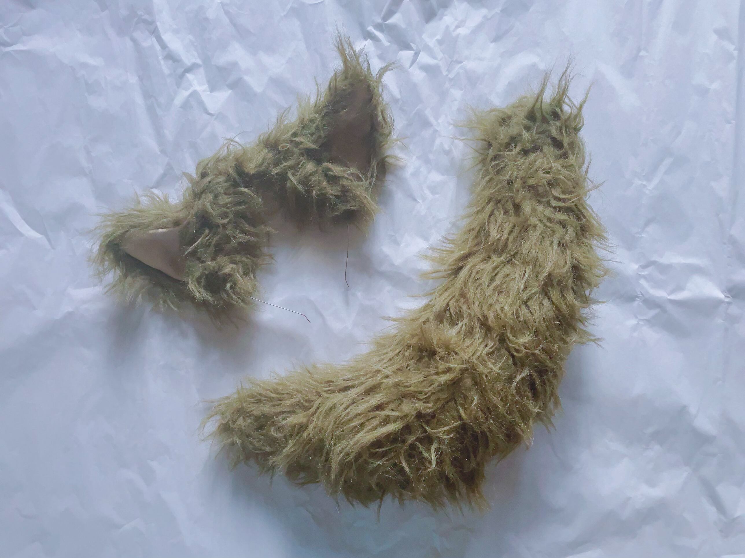 深いグレーグリーンのファーで、新作のオオカミセットを作りました。