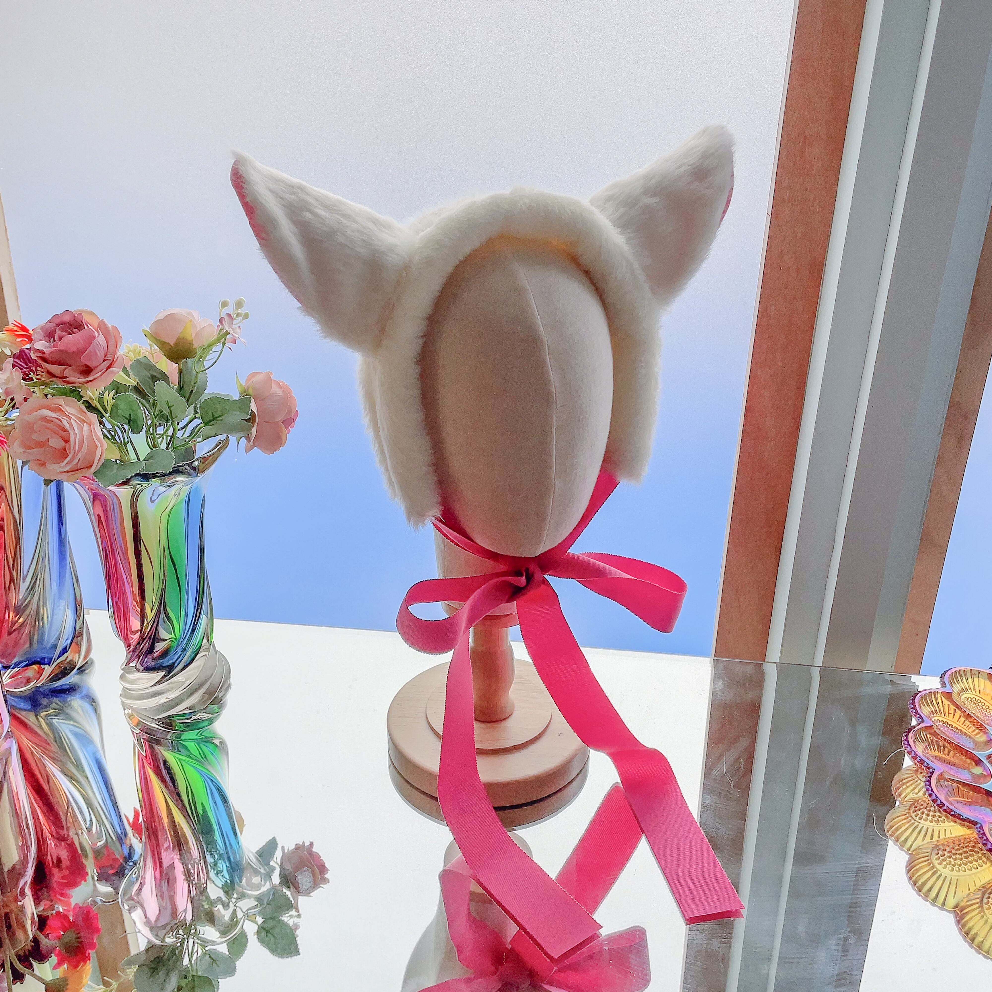 しろいろヘッドドレス型ネコちゃん(廉価版ニューオミミ)ももいろリボン
